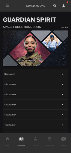 Built in Flutter and powered by a Directus CMS backend, the app centralizes critical Space Force content—such as the Guardian Handbook, news, and base resources—into a single, barrier-free platform.